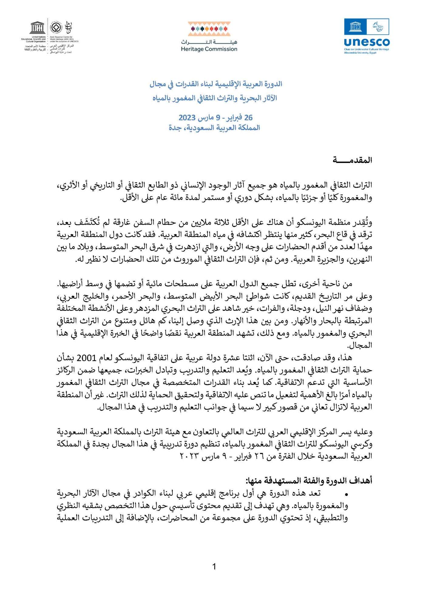 المركز الاعلامي / الأخبار / الدورة العربية الإقليمية لبناء القدرات في مجال الآثار البحرية والتراث الثقافي المغمور بالمياه