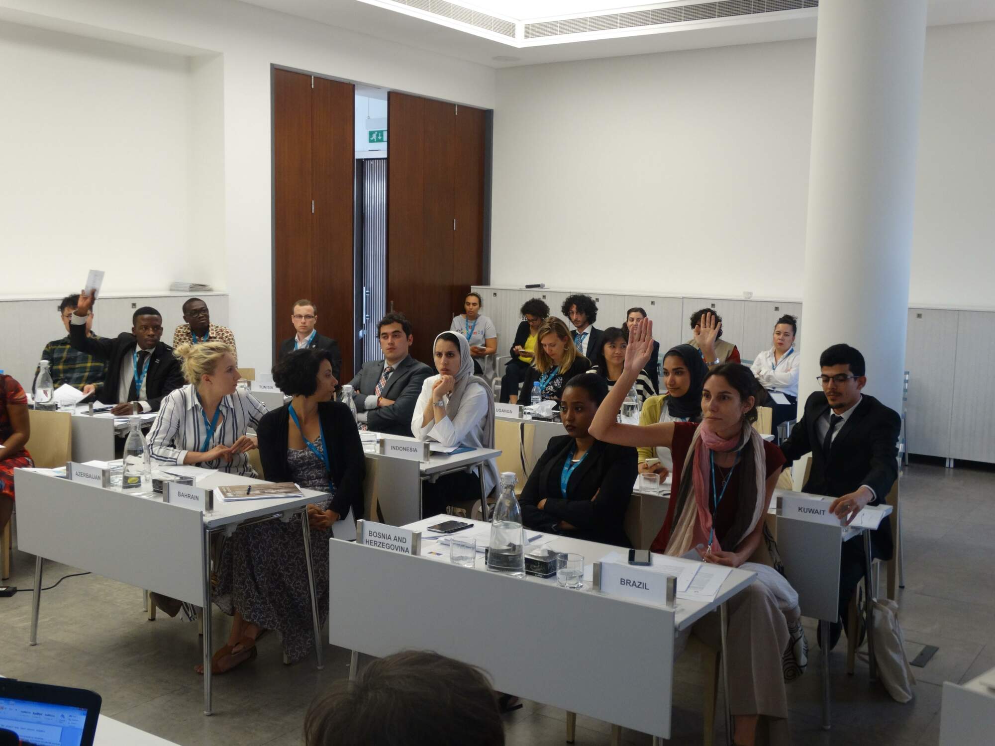 Les partticipants du Forum des jeunes sur le patrimoine mondial assistent à une simulation de réunion du Comité à l’ARC-WH